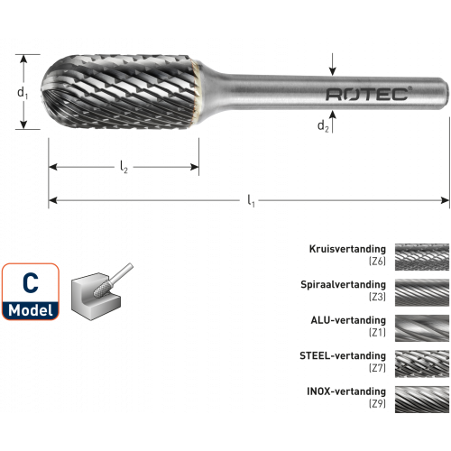ROTEC C HM STIFTFREES KRUISVERTAND 8X19X64MM
