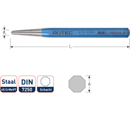 ROTEC CENTERPUNT 8-KANT 10X120MM +PUNT 4MM