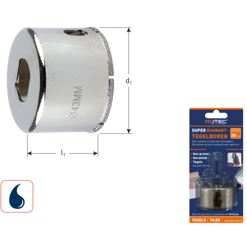 Rotec diamant tegelboorkroon 32mm voor exact boren, mooie zuivere gaten, geen materiaal versplintering.