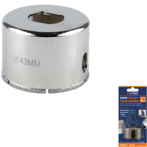 Rotec diamant tegelboorkroon 43mm voor exact boren, mooie zuivere gaten, geen materiaal versplintering.