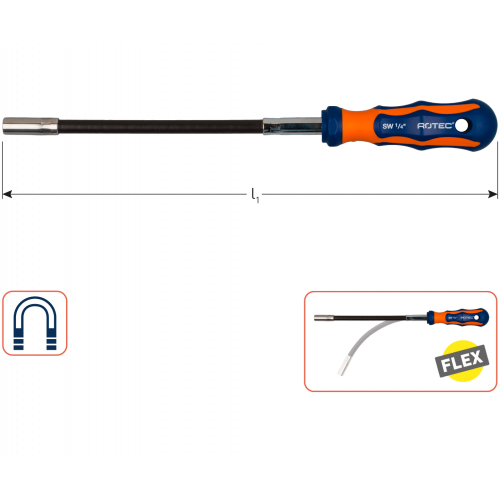 ROTEC FLEXIBELE BIT SCHROEVENDRAAIER 1/4'' MAGNETISCH 2K-HEFT 310MM