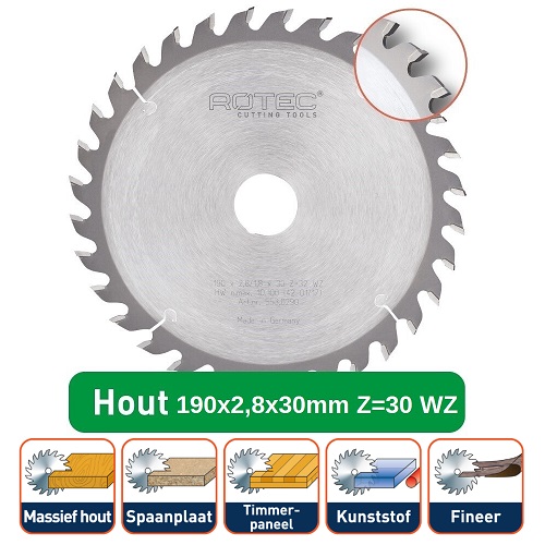 ROTEC HM CIRKELZAAGBLAD 190X2,8X30MM Z=30 WZ