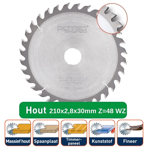 ROTEC HM CIRKELZAAGBLAD 210X2,8X30MM Z=48 WZ