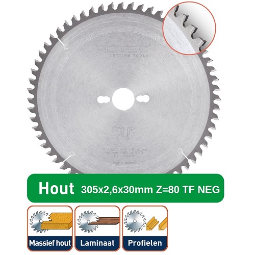 ROTEC HM CIRKELZAAGBLAD 305X2,6X30MM Z=80 TF NEG