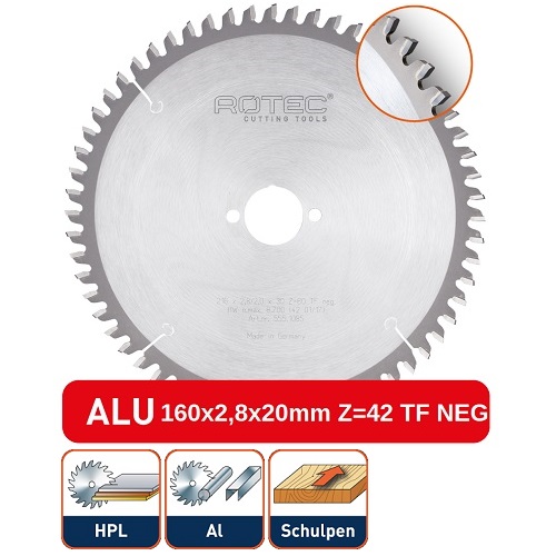 ROTEC HM CIRKELZAAGBLAD NF-METALEN 160X2,8X20MM Z=42 TF NEG