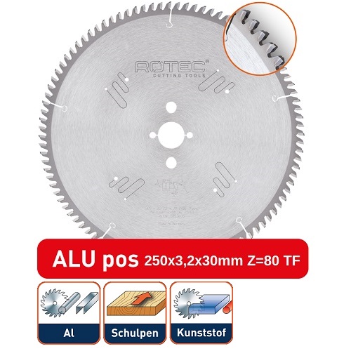 ROTEC HM CIRKELZAAGBLAD NF-METALEN 250X3,2X30MM Z=80 TF POS