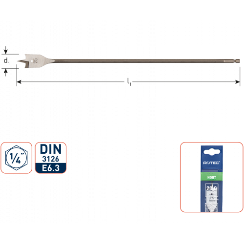 Rotec speedboor ø28 x 400 mm. Lange speedboor, met 1/4" bit-aansluiting, geslepen, gehard, met spaanbreker. Zeskant schacht voorkomt slippen in de boorkop.