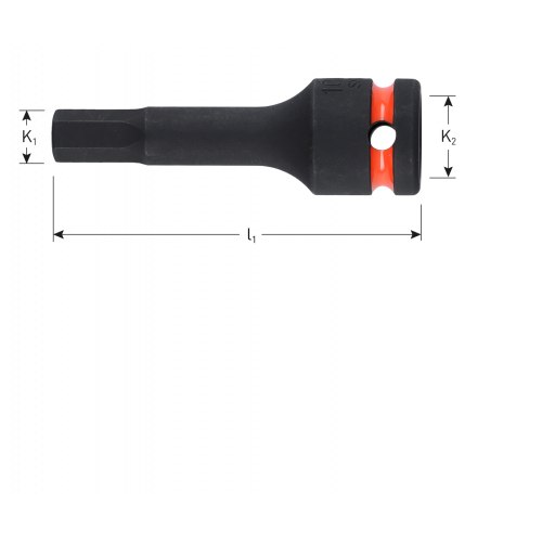 Krachtdop voor bouten met binnen-zeskant, voorzien van binnenvierkant-aansluiting volgens DIN 3121/ISO 1174.