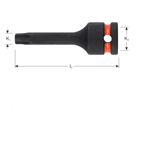 Krachtdop voor bouten met Torx®, voorzien van binnenvierkant-aansluiting volgens DIN 3121/ISO 1174.