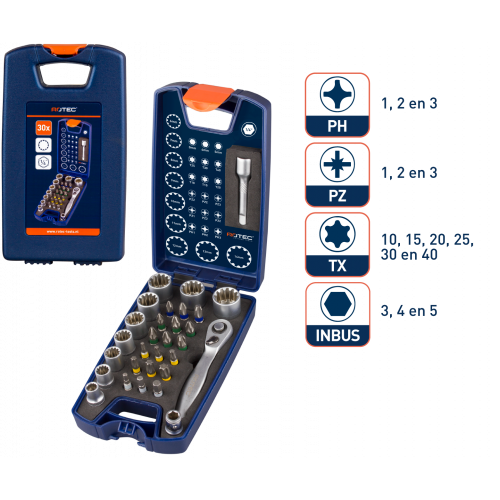 Rotec OPTI-Bitset, 1/4" (PH, PZ, TX en INBUS + doppen):