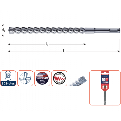 ROTEC SDS+ HAMERBOOR 4-SNIJDER 8X115MM