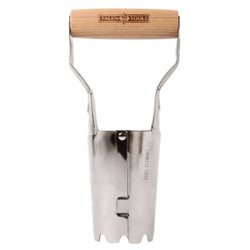 Deze klassieke bollenplanter is geschikt als hulpmiddel bij het planten. Aan de zijkant van de bollenplanter kunt u aflezen hoe diep de bollenplanter onder de grond zit. Aan de bovenzijde zit een essenhouten tussenstuk. Verder is de bollenplanter geproduceerd uit roest vast staal wat een langere levensduur heeft.
