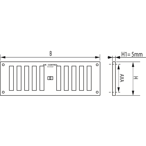 Air Control kunststof schuifrooster wit 240 x 80 mm, inclusief schroeven. Afsluitbaar d.m.v. een schuif in het midden.