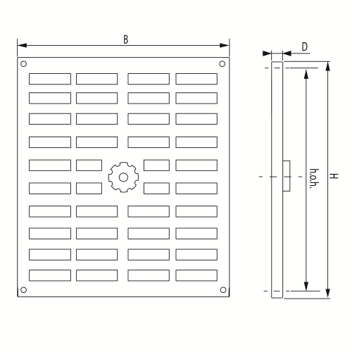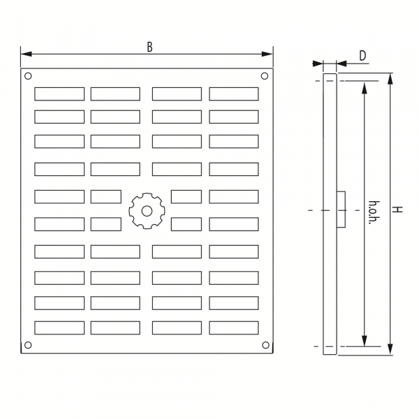 Toepassing: Als binnenrooster, voor toe- en afvoer van lucht.