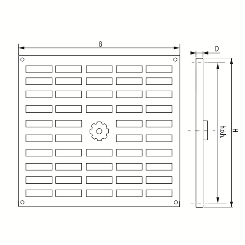Toepassing: Als binnenrooster, voor toe- en afvoer van lucht.