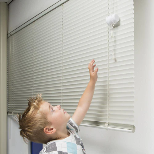 De koordoproller voorkomt verstrikking in koord van gordijnen en lamellen.