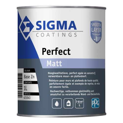 Sigma Perfect Matt is een perfect egale matte muurverf voor binnen op basis van 100% acrylaatdispersie.