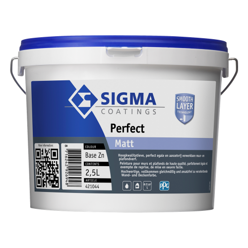 Sigma Perfect Matt is een perfect egale matte muurverf voor binnen op basis van 100% acrylaatdispersie.