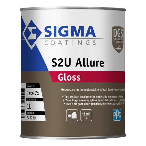 Sigma S2U Allure Gloss is een extreem duurzame, hoogglans lakverf voor buiten op basis van polyurethaan-alkydhars met DGS technologie. Gemakkelijk verwerkbaar van 0°C tot 30°C.