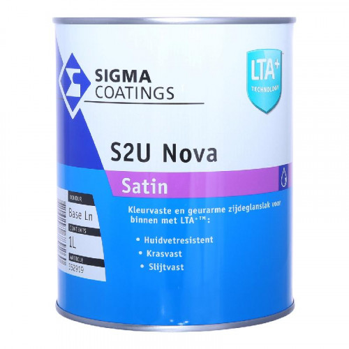 Sigma S2U Nova is ontwikkelt als zijnde hoogwaardige watergedragen lakken. De Nova verven zijn verkrijgbaar in diverse glansgraden en u kunt ze het beste binnen gebruiken. S2U Nova verf van Sigma wordt door de vakman als zeer prettig ervaren, deze verf ruikt niet, droogt snel en is minder schadelijk voor het milieu.