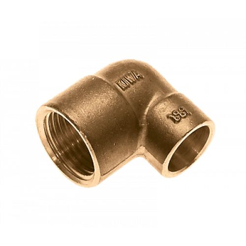 Soldeer verloopknie 1/2"binnendraad x 15 mm messing.