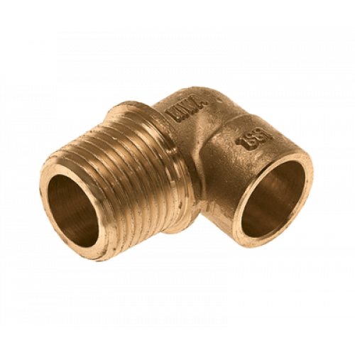 Soldeer verloopknie 1/2" buitendraad x 15 mm messing.