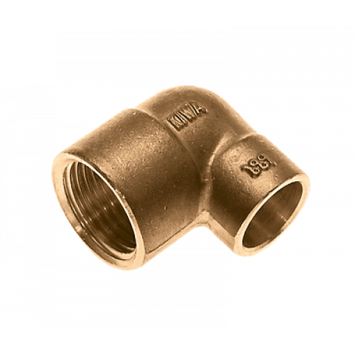Soldeer verloopknie 3/8" binnendraad x 15 mm messing.