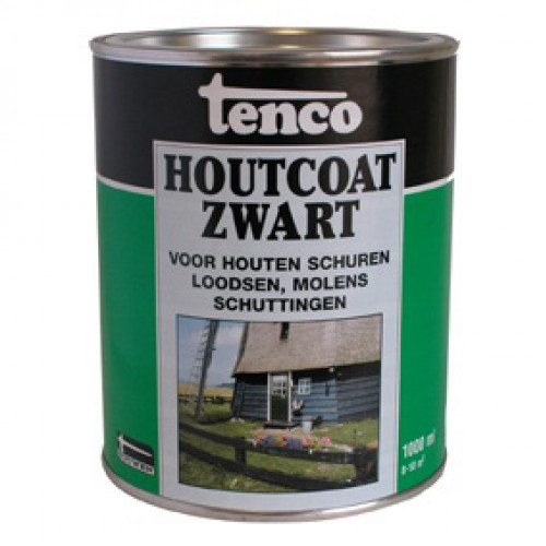 Tenco Houtcoat Zwart is een speciale zwarte coating voor houten objecten welke voorheen zijn behandeld met teerproducten. Tenco Houtcoat Zwart wordt gebruikt ter bescherming en verfraaiing van objecten zoals schuren, schuttingen, loodsen, molens enz. Waarbij het karakteristieke uiterlijk behouden blijft. Tenco Houtcoat Zwart biedt een prima bescherming en is bestand tegen alle weersinvloeden.