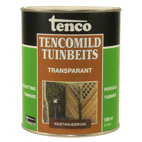 TencoMild transparant is een transparante en goed beschermende buitenbeits. Eenvoudig te verwerken en te onderhouden Beschermt tuinhout tegen alle weersinvloeden Geschikt voor staand tuinhout zoals schuttingen en schuren, niet geschikt voor liggende delen zoals vlonders Voor nieuw of eerder met beits behandeld hout Geschikt voor zachte houtsoorten, niet geschikt voor hardhout