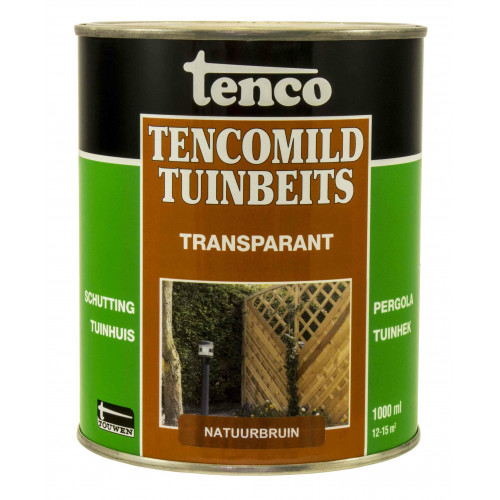 Tencomild Tuinbeits transparant natuurbruin is waterafstotend en behoudt lang zijn kleur. Verfraait al uw tuinhout en verlevendigt de houtstructuur.