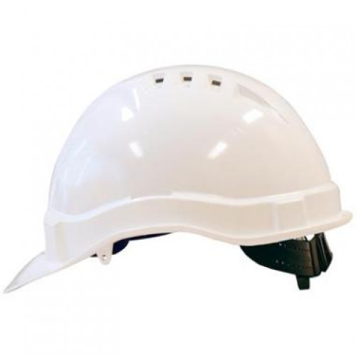 De M-Safe MH6000 veiligheidshelm met schuifinstelling biedt uw klant uitstekende hoofdbescherming. De HDPE helm heeft een gemakkelijk vervangbare badstof zweetband en drie ventilatiegaten aan weerszijden.