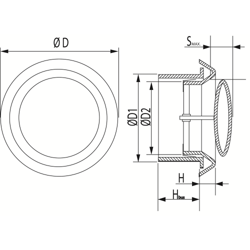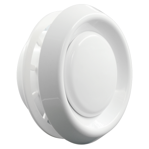 Afsluitbaar ventielrooster met montagebus, klemring en schuimrubberen afsluiting.