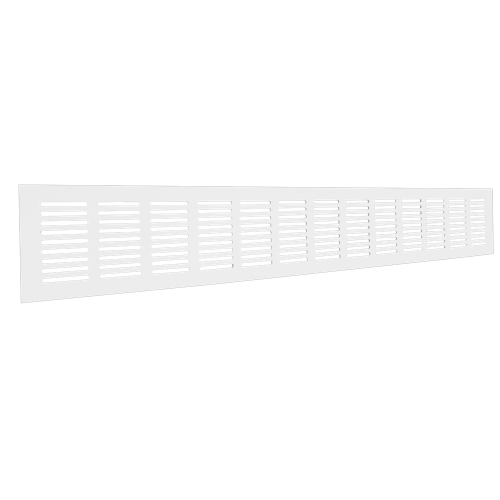 Ventilatiestrip, aluminium extrusie, geanodiseerd of met poedercoating wit RAL 9010. Achterflens (hoogte 15 mm) met vertanding voor robuuste montage.