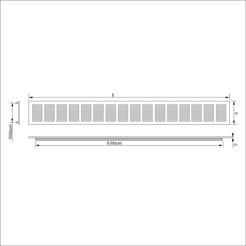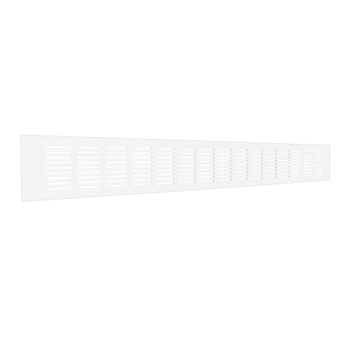 Ventilatiestrip, aluminium extrusie, geanodiseerd of met poedercoating wit RAL 9010. Achterflens (hoogte 15 mm) met vertanding voor robuuste montage.