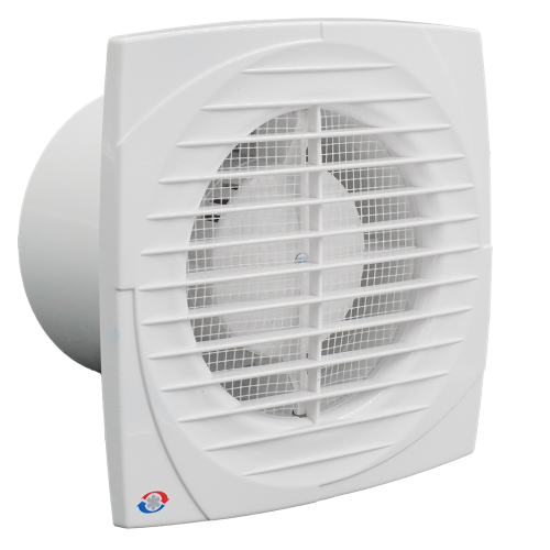 Ventilator 125DLT kogelgelagerd met timer (Ø 125mm), axiaal, incl. muggennet. Door zijn slank design valt hij mooi weg tegen de muur. Geruisarm..
