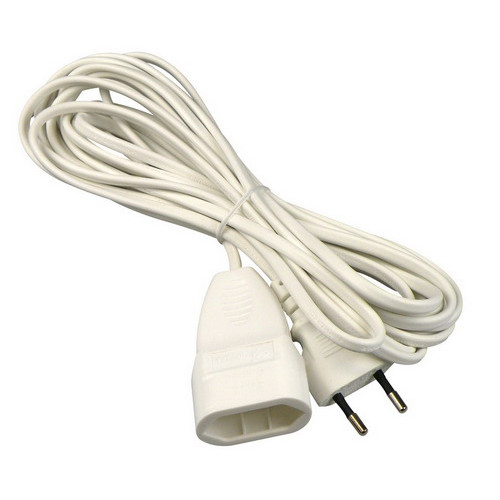 Verlengsnoer euro wit, 2x0,75mm, 5 meter lang.