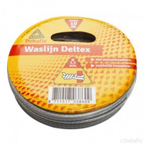 Waslijn deltex 10 meter, met metaaldraadkern, dikte draad: 3,5mm, kan gemakkelijk geknoopt worden.