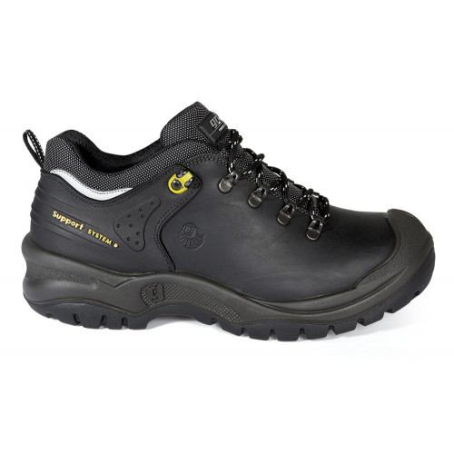 Deze zwarte lederen werkschoen van het merk Grisport type 801L met veiligheidsklasse S3 heeft een geperforeerde stalen neus en een stalen tussenzool. Dankzij de PU/Nitril zool met antislipprofiel is deze schoen bestand tegen 300°C contactwarmte. Het Heel Support System geeft extra steun en bescherming aan deze werkschoen. Dit lage model veiligheidsschoen heeft de volgende kenmerken: overneus, uitneembare inlegzool, HRO, SRC, warmte isolatie en antistatische eigenschappen. De Grisport 801L bestaat uit de volgende materialen: bovendeel: leer, voering/binnenzijde: Cambrelle®, zool/onderzijde; PU/nitril.