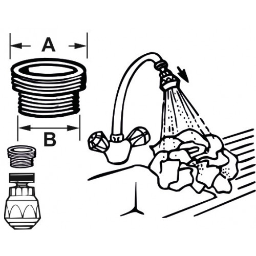 Met schroefdraad overgangsstuk van plastic M24 x 1 ET tot M22 x 1 ET