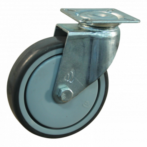 Zwenkwiel 100mm, bestaand uit een polypropyleen (PP) velg en een thermoplastisch rubberen (TPE) loopvlak. Dit zwenkwiel is uitgerust met een kogellager. Het draagvermogen is 70kg. Deze wielen worden voor veel verschillende toepassingen ingezet, waaronder op kantoor, in winkels of op beurzen onder bijvoorbeeld rekken en displays en voor licht industriële toepassingen.