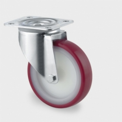 ZWENKWIEL 100MM POLYAMIDE WIT + PU LOOPVLAK ROOD PLAAT 200KG