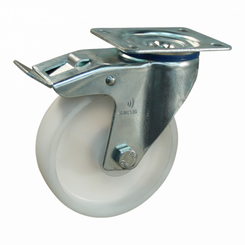 Zwenkwiel geremd 100mm, uitgevoerd in polypropyleen (PP) kunststof. Deze transportwielen zijn zowel stootbestendig als slijtvast. Daarnaast kunnen ze goed tegen vocht en lopen ze licht. Dit maakt ze geschikt voor onder andere (rol)containers, machines en constructies die buiten staan. Deze wielen zijn uitgevoerd met naaf met rollager. De dichte constructie zorgt ervoor dat er geen vuil in de wielen kan komen, wat ze geschikt maakt voor cleanrooms en andere omgevingen waar hygiëne belangrijk is. Het draagvermogen is 150kg.