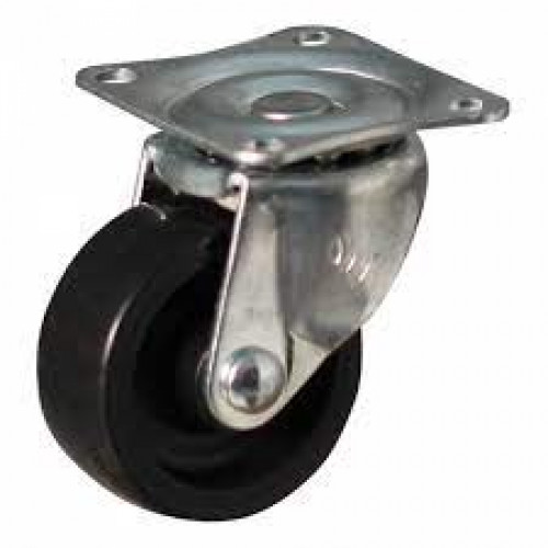Zwenkwiel 50 mm met een loopvlak van zwart kunststof. Uitgevoerd met glijlager. Het draagvermogen is 50 kg. Dit meubel zwenkwiel wordt bijvoorbeeld gebruikt voor toepassingen op kantoor of op school. Door het harde loopvlak zijn ze heel geschikt voor gebruik op een zachte ondergrond. Daarnaast zijn de wielen in te zetten als geleidingswiel, bijvoorbeeld als ladegeleider of voor deuren.